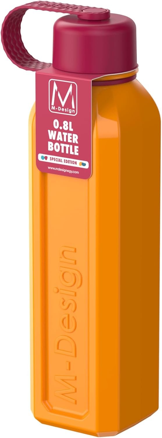 زمزمية مربعة برتقالي بغطاء متصل فوشيا800 مل M-DESIGN
