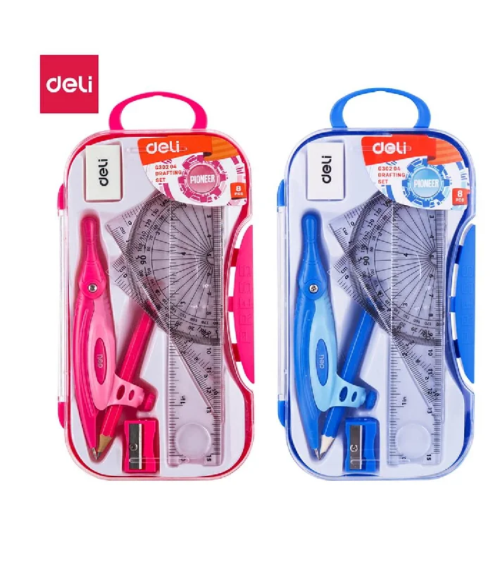طقم هندسي متكامل من 8 قطع لتلبية كل احتياجات الرسم والقياس.