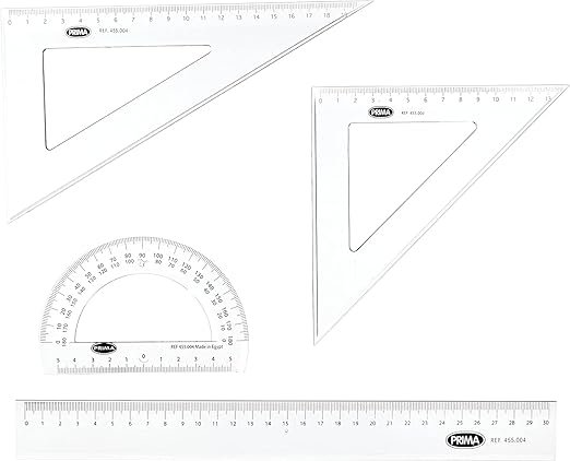 يشمل عدد 2 مثلثات ، منقلة، مسطرة.