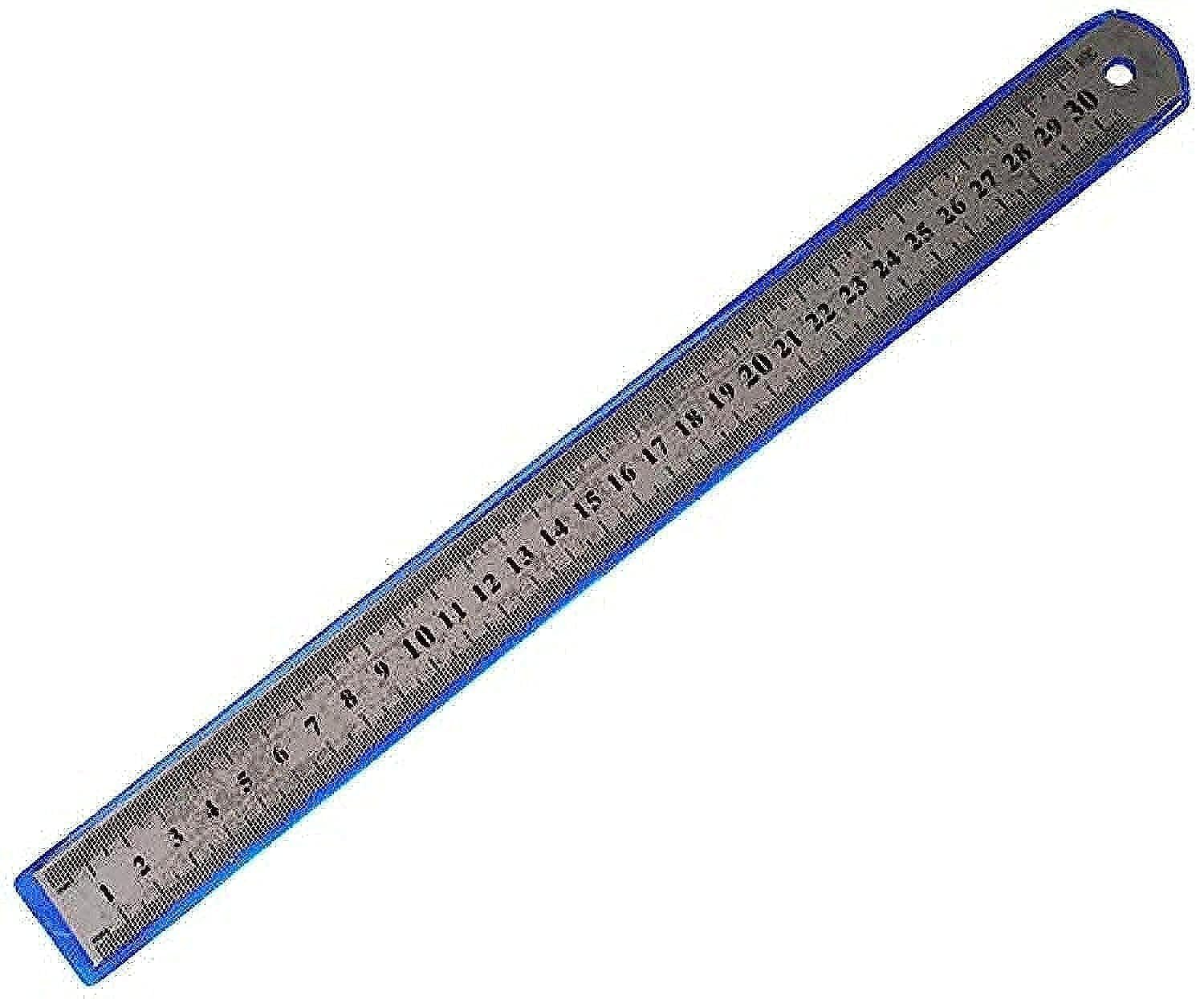 مسطرة معدنية متينة بطول 30 سم، مقاومة للثني والتآكل وتُستخدم لقياسات دقيقة وطويلة الأمد.
