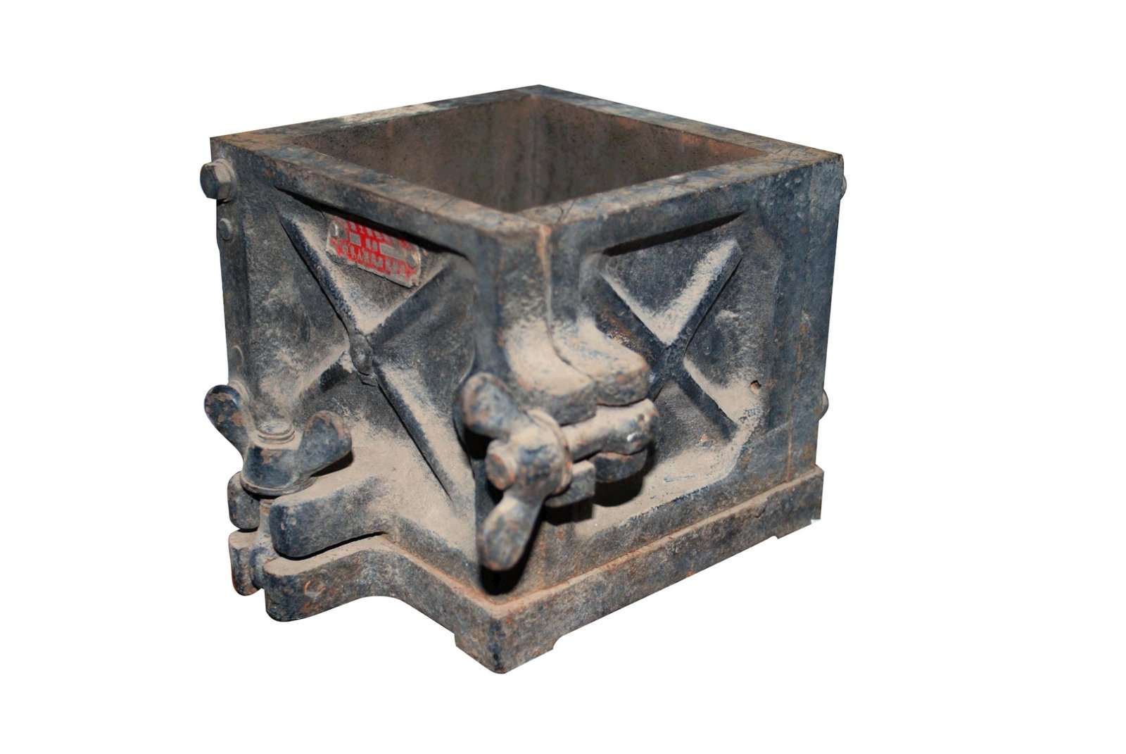 مكعب خرسانة مستورد مقاس 10 × 10 سم، مصنوع من الحديد الزهر، التشطيب للسطح الداخلي عالي الجودة مطابق للمعايير الدولية، يستخدم في اختبار عينات الخرسانة لتحديد قوة الضغط والانحناء.